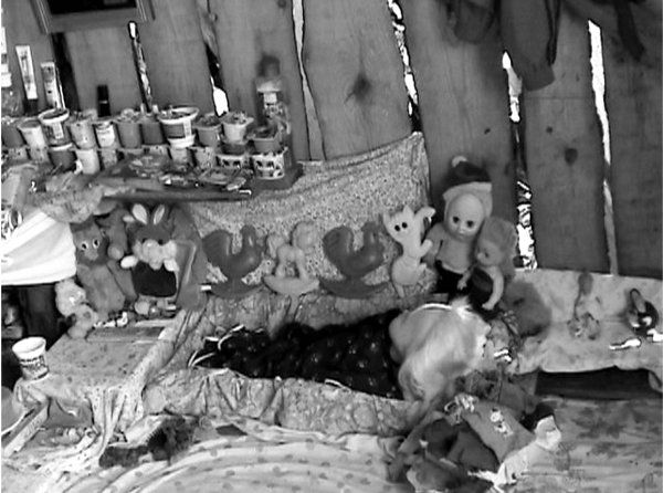 Как-то вечером тётя Света подошла к большому дому, прислушалась к игре под его высоким крыльцом и позвала девочек из их укрытия. Раздались радостные голоса и все четыре подружки, держа в руках своих игрушечных героев, выскочили к своей гостье. Поздоровавшись и даже обнявшись, они пригласили тётю Свету посмотреть на их кукольный домик. Их гостья сразу согласилась и с большим интересом заглянула в простенькую дверцу под крыльцом. Хозяин дома, папа Вики и Лены, провёл сюда для девочек свет, смастерил полочки для игрушек и стульчики для детей, ну а всё остальное, в том числе и большой кукольный дом (работы папы Дины и Ларисы), неразлучные подружки добавили сами.